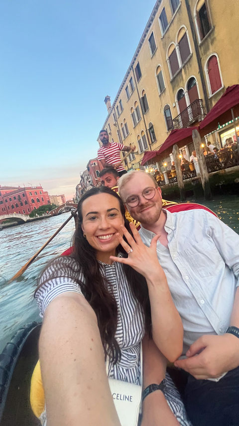Etter ein treig start har dei haldt saman gjennom folkehøgskuleår med avstand og 6 år med studentliv i Bergen før Bendik etterkvart manna seg nok opp til å gå ned på kne i ein gondol i Venezia sommaren 2024, noko Sofie var svært begeistra (og klar) for. No har dei kome seg på plass i ny bolig i Volda og det er duka for ei kjekk feiring saman med alle dei er glade i!